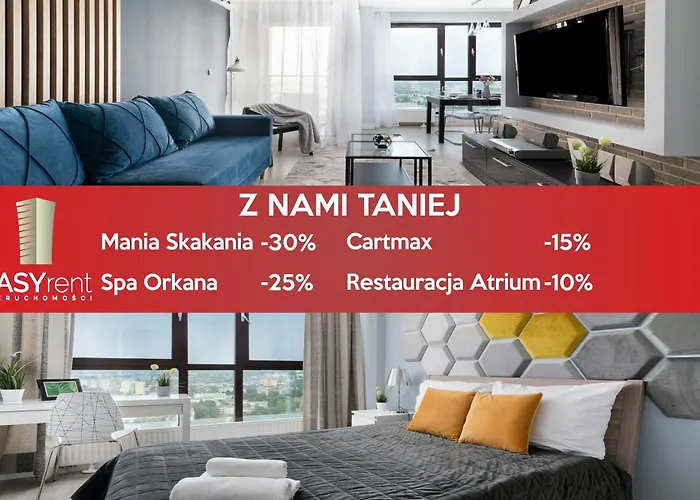 The 1-room Easy Rent Apartments - Sky Lublin lies in a business neighbourhood and provides guests with Wi-Fi, and a free private car park on site. Juliusz Osterwa Theatre is around 25 minutes' walk from the apartment, while Lublin Old Town is 10 minutes away by car.